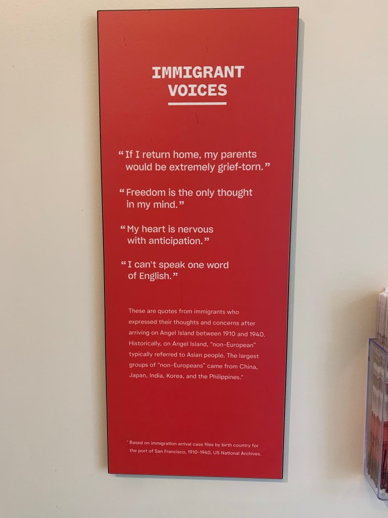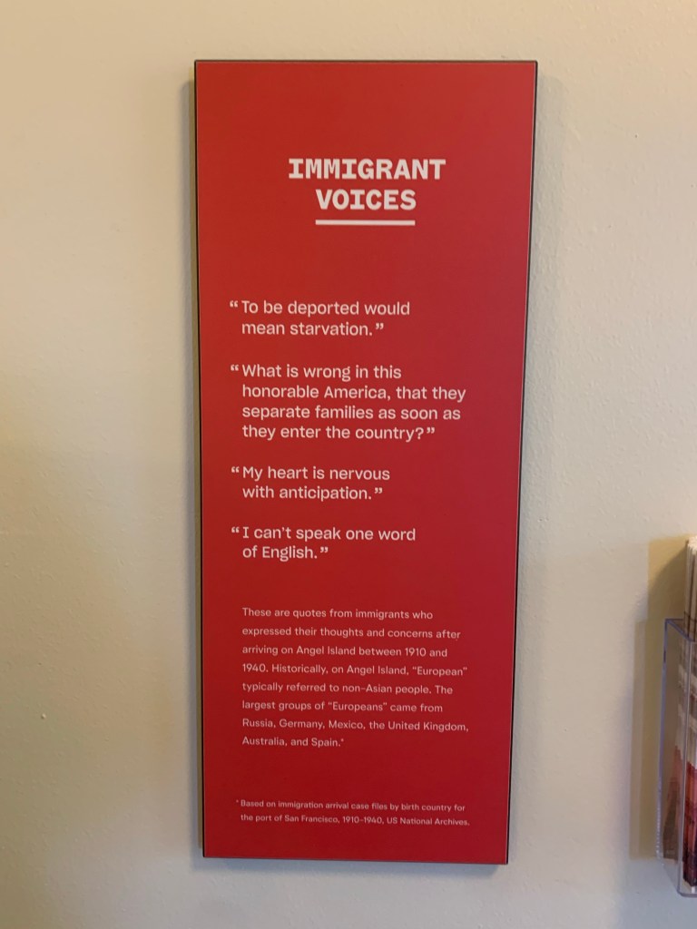 I did notice that some of the signage in the hospital’s museum said things like ‘on the site’ or ‘at the hospital on Angel Island.’ I was confused that they didn’t simply say ‘here.’ Perhaps the exhibit was designed to be mobile if necessary, but I thought that slight change in language took away some of the oomph in a site-based museum.